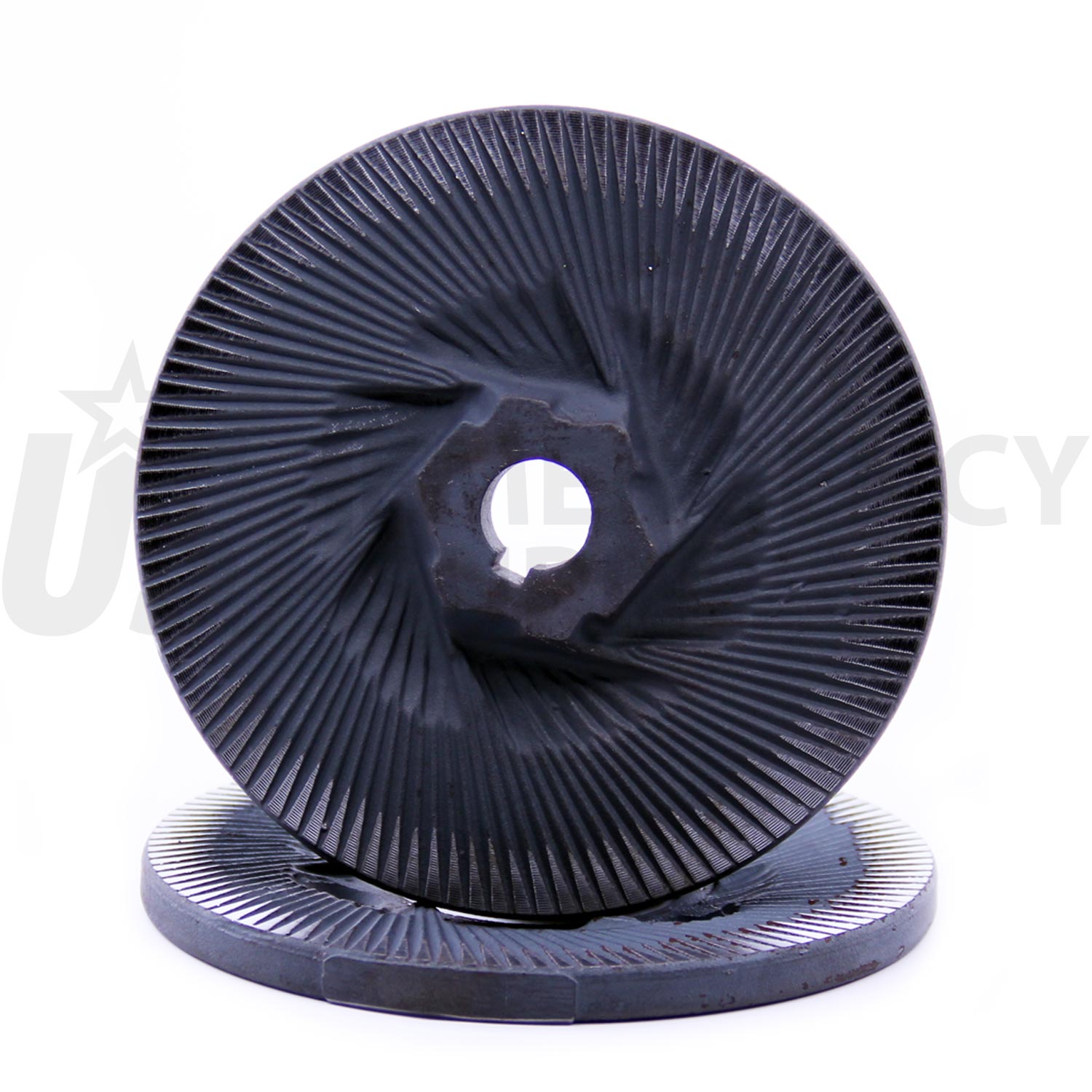 The motor and the mill should be securely fastened to a substantial surface. The mill handle must be removed before motorized operation. Never allow the mill to operate without grain being processed!!! Belt size may be determined by the distance the motor is mounted from the mill. Belt tension should not be excessive or bearing damage may occur.